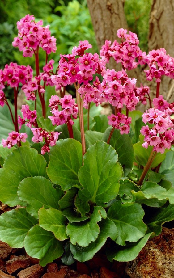 Бадан Сердцелистный (BERGENIA cordifolia) – неприхотливое растение с мощной зеленой листвой и красивыми нежно-розовыми цветами. Отлично переносит влагу и затенение, хорошо себя чувствует в низинах, растет в тени деревьев и кустарников. BERGENIA cordifolia хорошо смотрится в групповых посадках, в альпинариях, на рабатках. Цветение начинается в мае и продолжается до конца июня. Соцветия высокие, до 40 сантиметров, пышные. Мощная ярко-зеленая листва обеспечит декоративность растения на протяжении всего лета, в осенний период она приобретает красно-коричневый окрас.