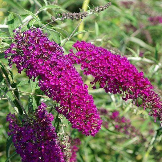 Саженцы Буддлеи (Осенняя сирень) Давида Нано Парпл (Nanho Purple) привлекательны внушительным размером взрослого растения (до 1,7 метра в высоту и до 2 метров в поперечнике) и обильным цветением. Со второй половины и до середины осени на кусте отрастают длинные колосовидные соцветия, длиной до 30 сантиметров, усыпанные мелкими лилово-синими цветочками. Цветущая буддлея ароматна и притягивает взгляд сочным оттенком многочисленных бутонов. Растение неприхотливо, но предпочитает для роста солнечные участки. Иногда побеги подмерзают зимой, но куст быстро восстанавливается.