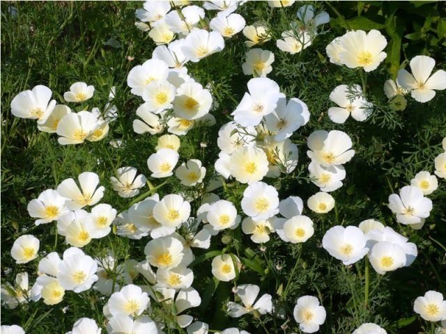 Семена эшшольции калифорнийской сорта Белый замок порадуют садоводов эффектным видом выращенного экземпляра. Компактный куст с серебристо-зелеными побегами и белыми чашевидными цветами отлично впишется в любую садовую композицию. Цветение продолжится с июня до октября. Семена эшшольции можно использовать при оформлении различных объектов: