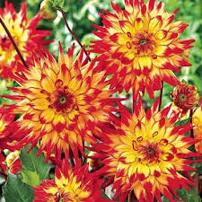 Георгина кактусовая мерлуза - это великолепное растение с яркими жёлтыми цветками, украшенными ярко-красными кончиками лепестков, свернутыми в изящные «трубочки». Её высота может достигать до 100 см, что делает её прекрасным акцентом в саду или на клумбе. Листья георгины имеют интересную форму и добавляют дополнительный шарм этому растению.