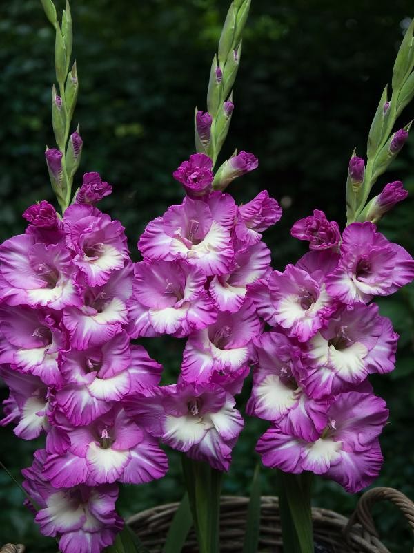 Луковицы Гладиолуса гибридного Шэти Фриззле (Shady Frizzle) — это сокровища для эстета. Крупные цветки с гофрированными лепестками окрашены в пурпурный градиент — от сочного пурпура до нежно-сиреневого цвета, а разбавляет всё это многообразие тонов белые полосы на нижних лепестках. Растение в высоту достигает 120 сантиметров, и привлекает к себе внимание. Оно хорошо смотрится в групповых композициях и монопосадках. Гладиолус Шэти Фриззле подходит для срезки и составления изысканных флористических композиций. Его цветки способны распускаться в вазе с водой, держаться они 10 дней и более.