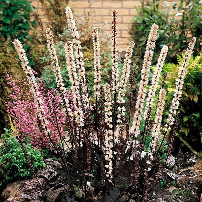 Рассаду Клопогона ветвистого Atropurpurea (Атропурпуреа) лучше всего высаживать во влажную почву. Хорошо приживается в тени. Это многолетнее растение созревает три года, а цветет в конце лета. Цветы бледно-розовые. Соцветие длинное, до 40 см. Листья большие, мощные, могут быть разного цвета от темно-зеленого до фиолетового. Эти большие листья к тому же могут избавить вас от сорняков. Растение очень крупное, высота может достигать двух метров. Семена отличаются очень хорошей всхожестью. Всходят на шестой месяц. Особенности: