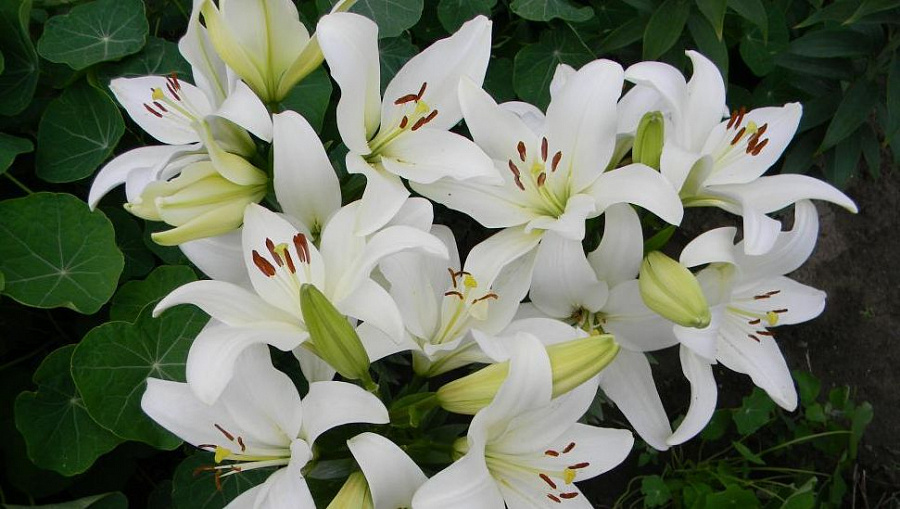 Окраска цветка : крупный, белый удлиненной формы, темно-оранжевые пыльники, у центра мелкий редкий красный крап