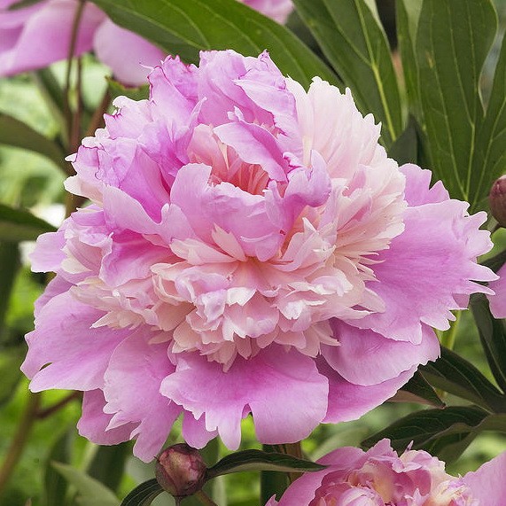 Саженцы пионов Мадам Эмиль Дебатэн (Madame Emile Debatene) подходят для любых участков. Ведь представленный многолетник не требует особых условий для роста и прекрасно себя чувствует не только на хорошо освещенных участках, но и в тени. Соцветия розовые с кремовым оттенком в центре бутона. Почти всегда в центре соцветия есть "хохолок", повторяющий цвет широких нижних лепестков. Сильный приятный аромат исходит уже от бутонов. Характеризуется сорт саженцев пионов Мадам Эмиль Дебатэн среднепоздним сроком цветения.